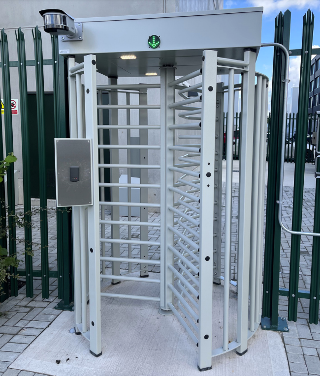 • Kontrollierter Zugang: Drehkreuze in voller Höhe können mit elektronischen Zugangskontrollsystemen wie Schlüsselkarten, Anhängern oder biometrischen Geräten integriert werden. So kann das Gebäudemanagement überwachen, wer das Gebäude betritt und verlässt. Es können alle Größen von Zutrittskontrolllesern eingesetzt werden.