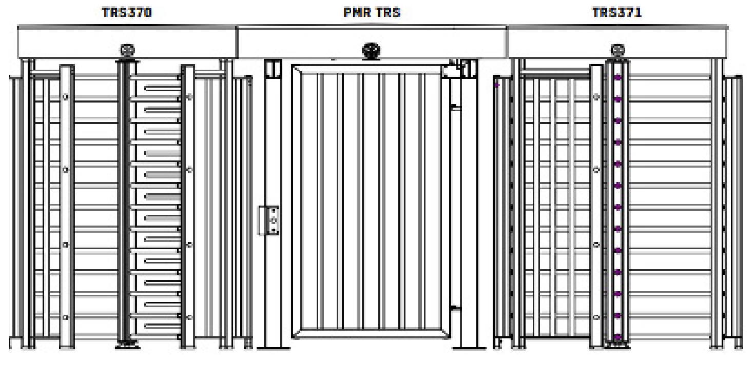 Das TRS ist so konzipiert, dass es mit einem TRS-Drehkreuz in voller Höhe kombiniert werden kann, um ein nahtloses Design zu gewährleisten.