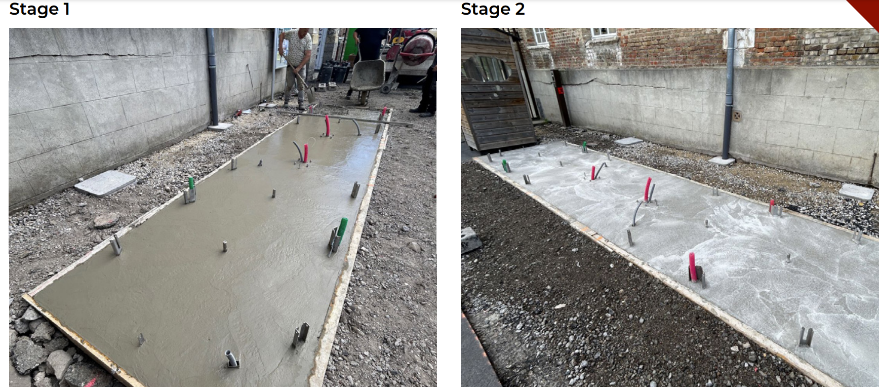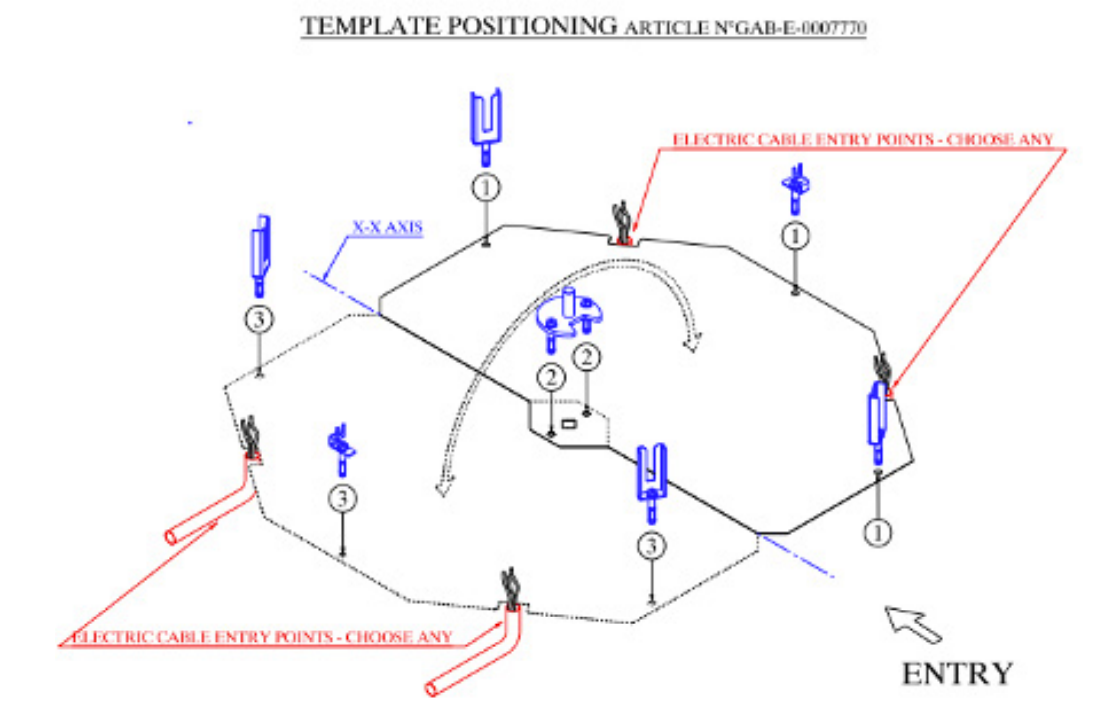 Gelegentlich ist bereits eine geeignete Fläche vorhanden, und dann wird eine Schablone zur Positionierung der Halterungen im Boden geliefert.