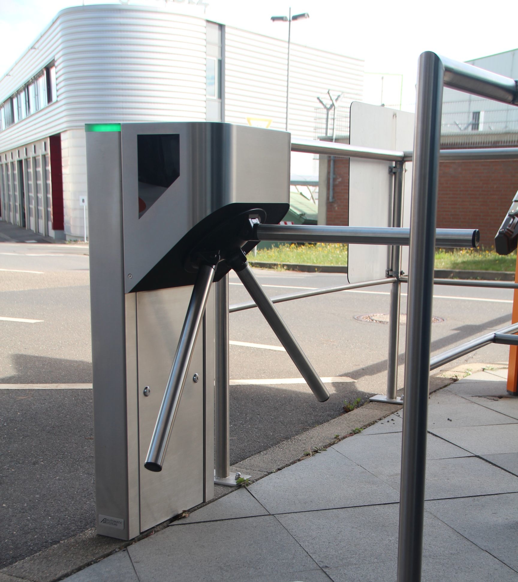 Seitens der PSE Technik GmbH & Co. KG wurden im Rahmen der Arbeiten in Aachen an verschiedenen Standorten Personenvereinzelungsanlagen des Modells TriLane 1 und 2 aus dem Hause Automatic Systems installiert, die teilweise mit AccessLane Schwenktüren kombiniert wurden. Die Vereinzelungsanlagen kommen nun an den Zugängen des Betriebs- und Werksgeländes sowie, am Verwaltungsgebäude der Stadtwerke zum Einsatz. Am Pförtnereingang, den zahlreiche Mitarbeiter täglich passieren, wurde eine Drehsperre des Typs TriLane 1 verbaut. Diese sorgt hier für den geregelten Zutritt aller auf dem Betriebsgelände an dieser Stelle eintretenden und arbeitenden Personen. Nachgelagert und als weitere Personenvereinzelungsanlage für den Verwaltungskomplex wurden Drehsperren vom Typ TriLane 2 und zwei Schwenktüren vom Typ AccessLane installiert. „Ich schätze, dass wir an den Drehsperren einen Durchlauf von ca. 250 bis 300 Personen pro Tag haben. An der synchron arbeitenden Schwenktüren-Kombination, welche primär für Anlieferungen zum Verwaltungsgebäude genutzt wird, kommen dann noch einmal 30 bis 40 Zutritte hinzu“ weiß Sebastian Toth. Die AccessLane Schwenktür-Lösung befindet sich zwischen den beiden Drehsperren. Die Funktionsweise der Vereinzelung basiert auf einem bauseitigen Transponder-Leser, welcher an der Eingangsseite der Drehsperren unter der Haube und somit nicht sichtbar installiert wurde. „Da die Betreiber ihre Personenvereinzelungsanlagen häufig nachträglich installieren, ist es in den meisten Fälle so, dass das bauseitige Zutrittskontrollsystem als Impulsgeber in unsere Anlagen implementiert werden muss. Das stellt natürlich kein Problem dar“ betont der Key-Account-Manager und unterstreicht somit das hohe Maß an Flexibilität. Die verschiedenen Zustände der Vereinzelung werden den Passanten über farbliche LED-Piktogramme in den Drehsperren angezeigt. So wissen letztere jederzeit, ob der Durchgang bereit ist, sie warten müssen oder freigeschaltet ist.