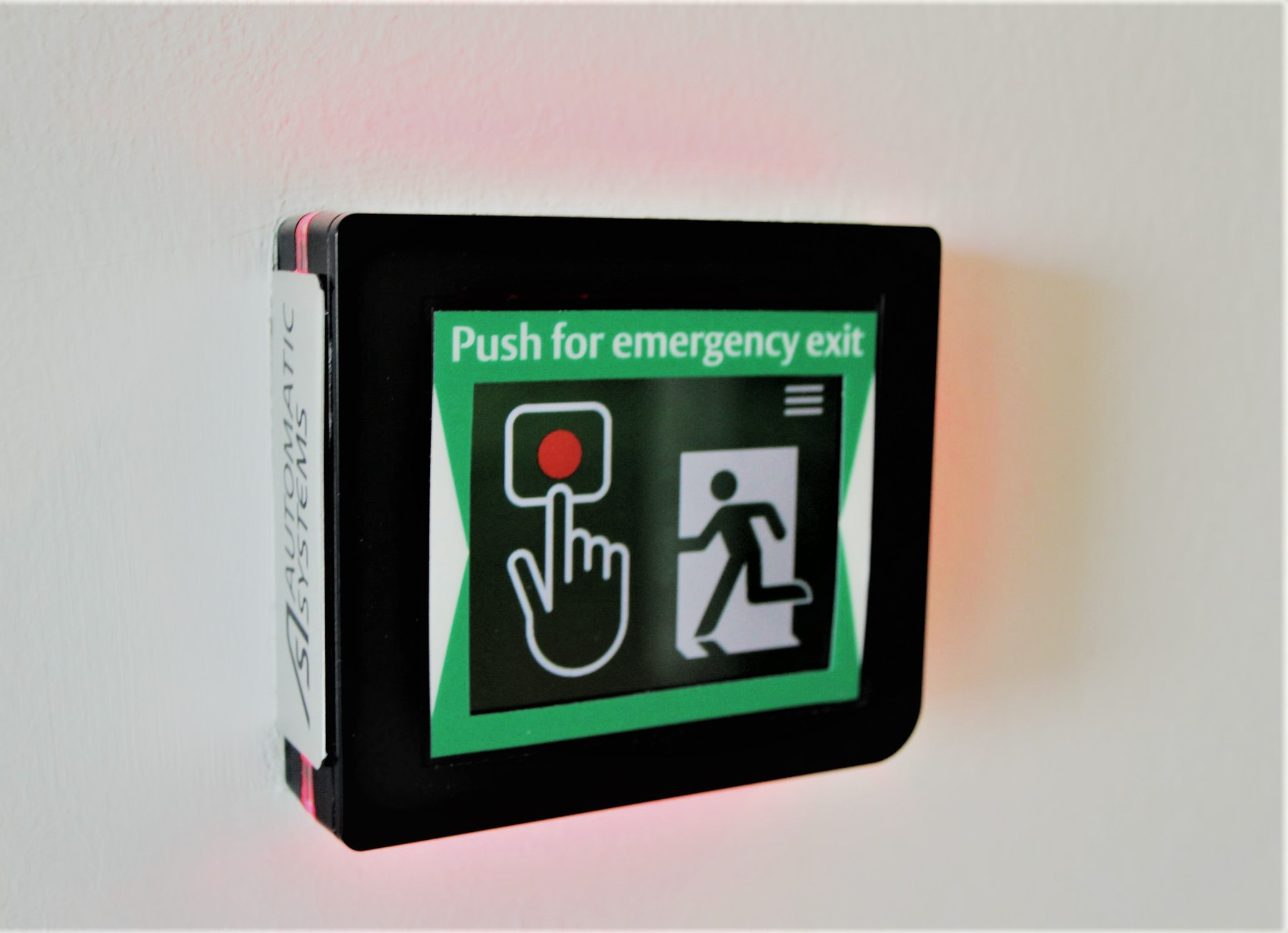 „Die errichteten AccessLane Schwenktüren übernehmen sogar eine Dreifachfunktion“, erklärt Sebastian Toth und ergänzt: „Im Normalbetrieb müssen durch diesen Durchgang auch größere Anlieferungen, welche beispielsweise mit einem Hubwagen transportiert werden, möglich sein. Aufgrund der Tatsache, dass eine Drehsperre mit ihrer geringen Durchgangsbreite an dieser Stelle technisch kaum realisierbar ist, hat man sich im Zuge der gemeinsamen Projektierung auf eine mittig im Laufweg angeordnete Lösung verständigt, welche einem „Saloon-Tür-Prinzip“ ähnelt“. Die Türen schwenken nach einem autorisierten Öffnungsimpuls nun synchron in die offene Position, in der sie kurzzeitig verharren. Danach schließen sie sich wieder automatisch. Kommt es jedoch zu einem Notfall, wird die Durchgangsmöglichkeit an dieser Stelle von einem im geschützten Bereich installierten, neuartigen Fluchtwegterminal gesteuert. In diesem Szenario wird zur Entriegelung vorschriftsgemäß die Bremse der Schwenktürsteuerung ausgeschaltet, sodass die gläsernen Schwenktüren sofort manuell ohne Widerstand in Fluchtrichtung geöffnet werden können, sobald das gut sichtbare Fluchtwegterminal betätigt wird. Der neue Zustand wird zusätzlich zur akustischen Warnmeldung über das Fluchtwegterminal, an den von allen Richtungen erkennbaren Piktogrammen der AccessLanes angezeigt. Bei dem Fluchtwegterminal handelt es sich um ein innovatives Touch-Panel, welches die drei sonst erforderlichen Module Not Taster, Schlüsselschalter und Kennzeichnungsaufkleber vereint. Der elegante Touch-Monitor überzeugt zudem durch seine kompakte Bauweise und eine einfache Bedienung. Neben seiner umfangreichen Funktionalität ist er optisch hochwertig verarbeitet. „Final sehen wir diese Komponente als einen weiteren innovativen Schritt der zeitgemäßen Weiterentwicklung“, erklärt Sebastian Toth. Zudem wird die Installation der normenkonformen Fluchtwegsteuerung nach DIN EN 13637 gerecht. „Dank der barrierefreien Durchgangsbreite von 1,20 m realisieren wir hier regelkonform die erforderliche Mindestdurchgangsbreite für die Flucht von bis zu 200 Personen“, weiß der Projektverantwortliche. Neben den akustischen und visuellen Signalen des Terminals sind auch an den Schwenktür-Installationen selbst LED-Piktogramme zu sehen, welche den aktuellen Zustand der Vereinzelungslösung wiedergeben. Auf Wunsch des Kunden wurden die AccessLane Lösungen an dieser Stelle zudem mit der Möglichkeit des „Dauer-Öffnens“ versehen. Hier wird zu besonderen Anlässen durch die Eingabe eines festgelegten Codes das automatische und motorische Öffnen ermöglicht. Während dieses Zeitraumes bleibt der Durchgang bis zur Rücknahme des Signales frei begehbar.