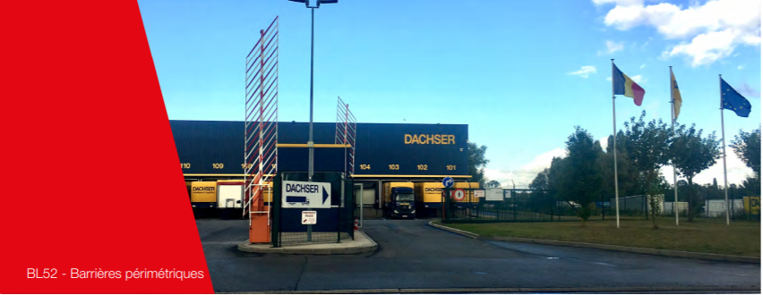 Automatic Systems advised Dachser to install BL52 perimeter barriers with a grate, for controlling the individual passage of trucks, in order to check access to the buildings on its site. The first BL52 barriers were installed in 2007. These barrier gates are designed to control the passage of vehicles for medium and wide accesses. The barriers support skirts or signalling accessories. Equipped with an articulated grate, the perimeter barriers can close an access (up to 6.5 m), making it impenetrable for vehicles and for pedestrians. They are suitable for intensive use.