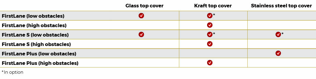 • Clear 8 mm thick tempered monolithic glass (FirstLane and FirstLane S)